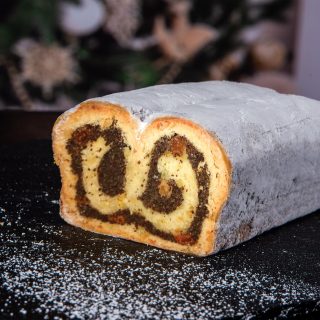 Mohnstollen und Mohnrolle unterscheiden sich nur in Form und Dekor.